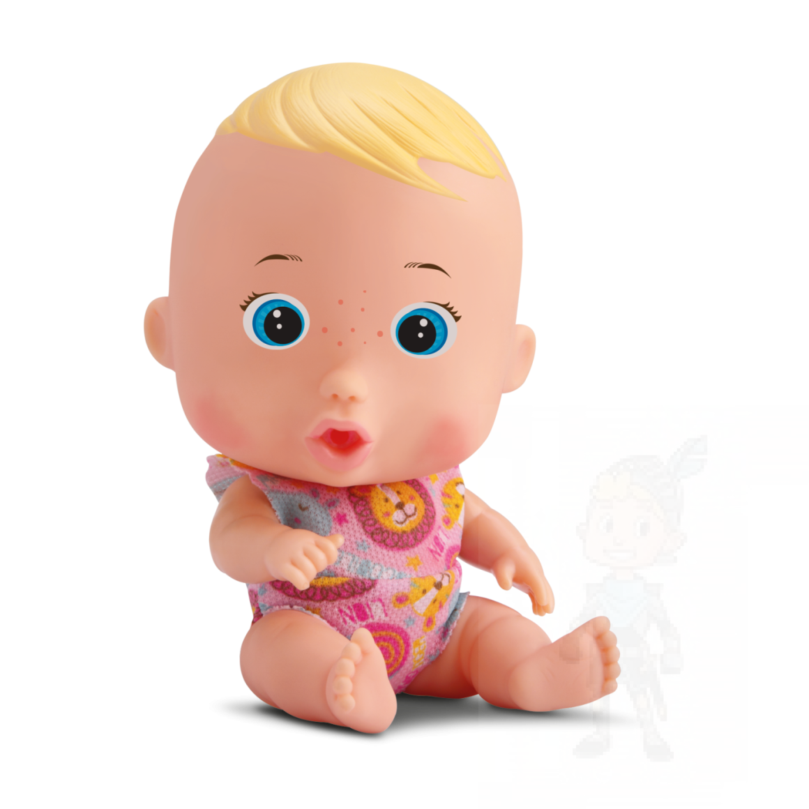 - Contém: Boneca, chupeta com luz, mamadeira mágica e fraldinha