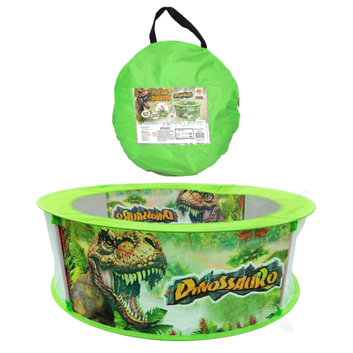 A Piscina Divertida Dinossauro pura alegria! Com uma estampa irada de Dinossauros! Nela você pode brincar com diversos brinquedos e adicionar bolinhas de plástico para ficar ainda mais divertido! Fácil de montar e guardar. (Piscina para brincar com bolinhas ou outros brinquedos. Não encher com água.)