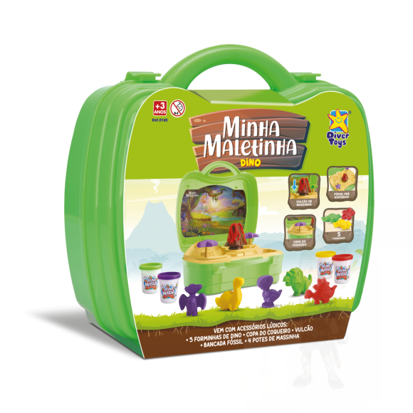 - Conteúdo da Embalagem: 4 Potes de massinha, 5 forminhas de dino, 1 copa do