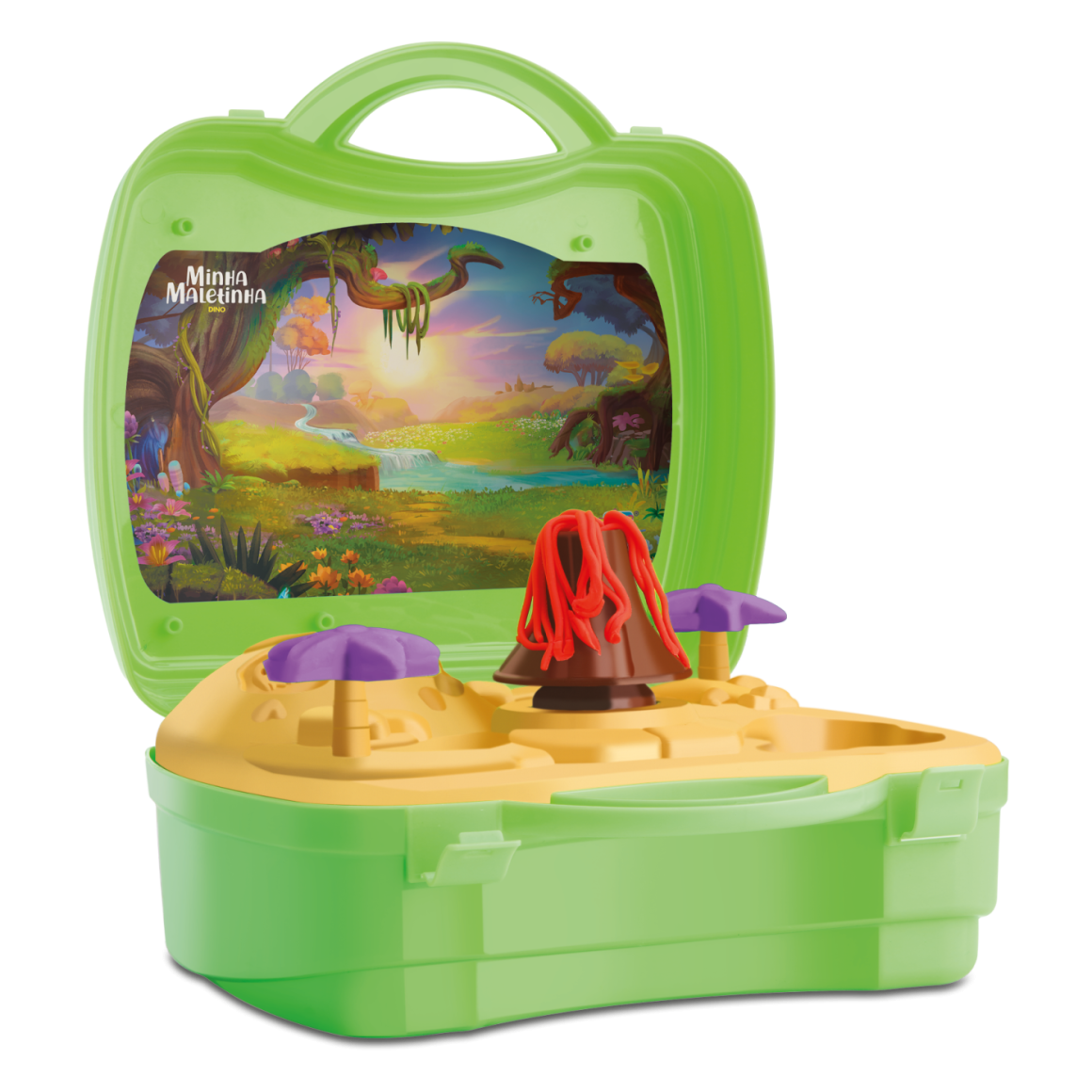 coqueiro, 1 vulcão, 1 bancada de fóssil e 1 maleta