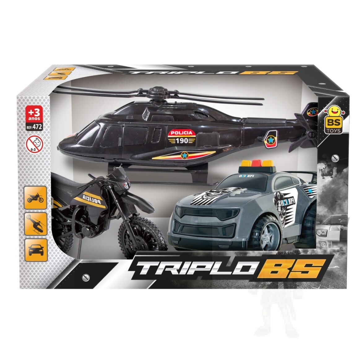 CARRO DE BRINQUEDO INF C/ HELICÓPTERO E MOTO TRIPLO