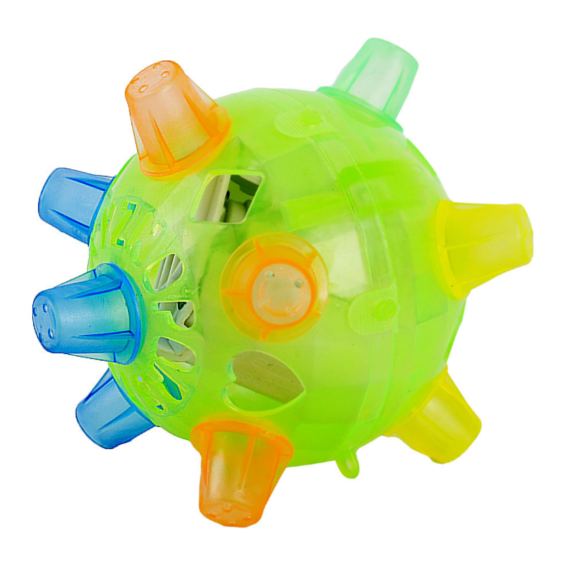 Coloca-se no chão e ela começa a pular e girar com som e luzes coloridas;